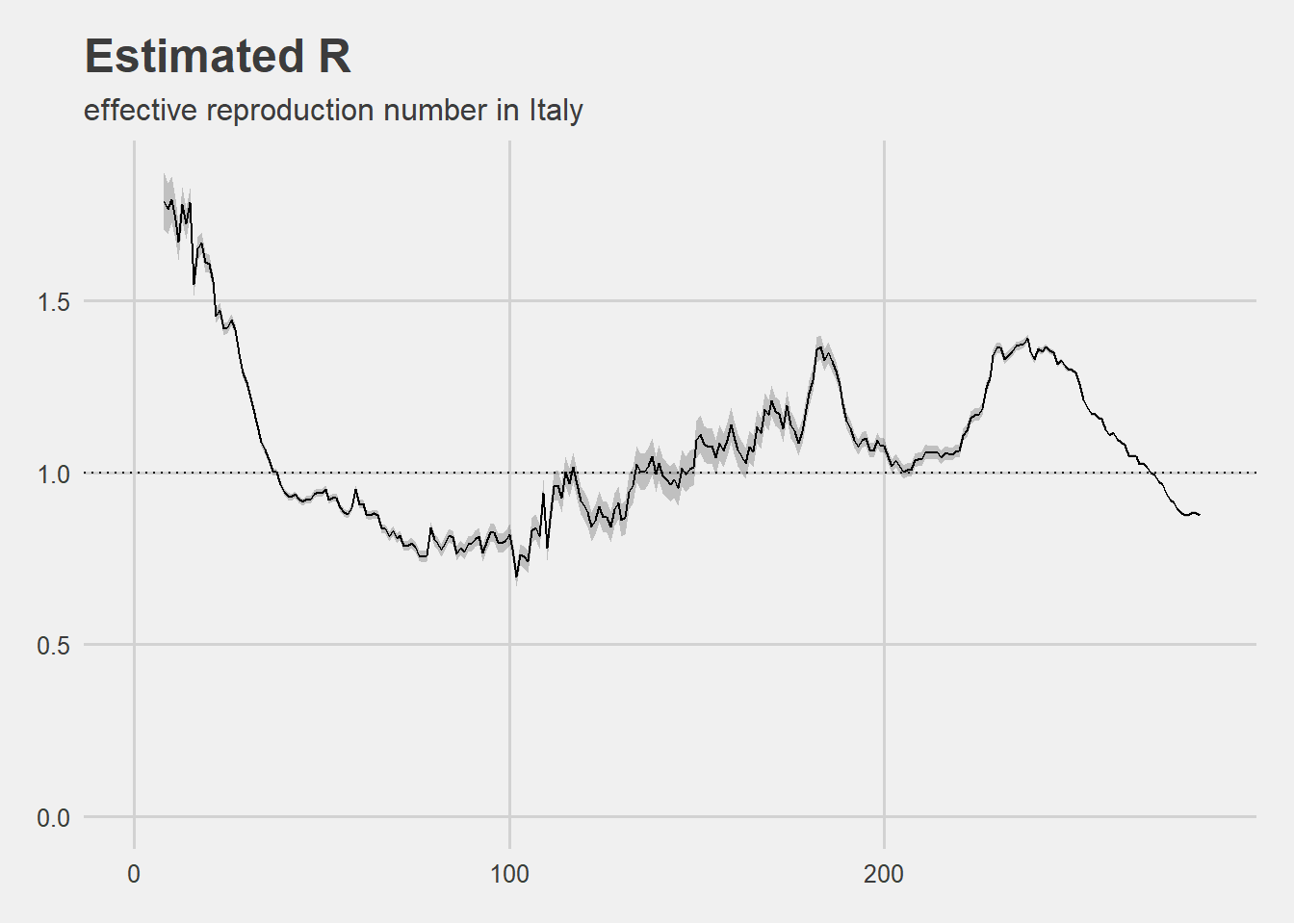 The trend of the \(R_t\) in Italy from the outbreak of the pandemic until early December is visualized below.