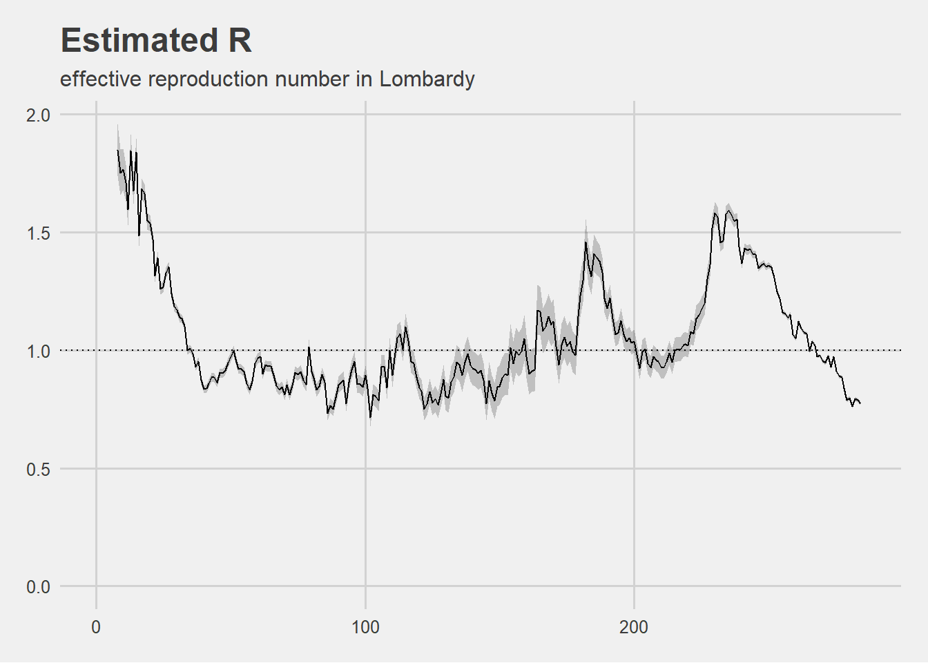 The trend of the \(R_t\) in Lombardy from the outbreak of the pandemic until early December is visualized below.