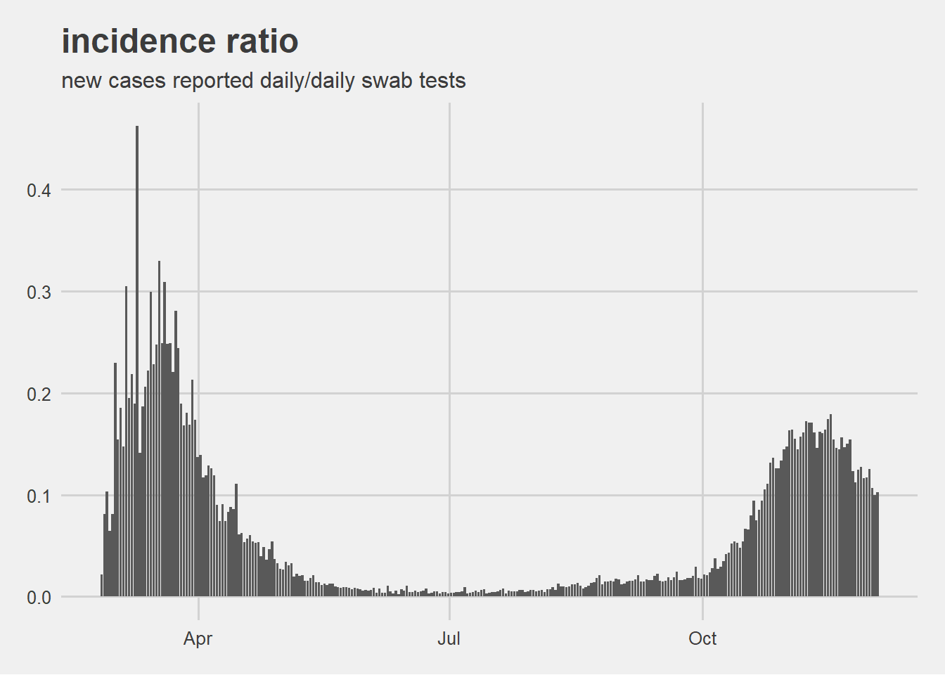 In order to make a sense of this finding it is useful to visualize together with the incidence also the numbers of daily swab tests made.