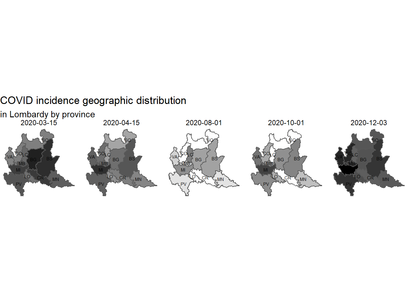 By analyzing a region, Lombardy, it is possible to verify that in the different phases of the pandemic different provinces are most affected.