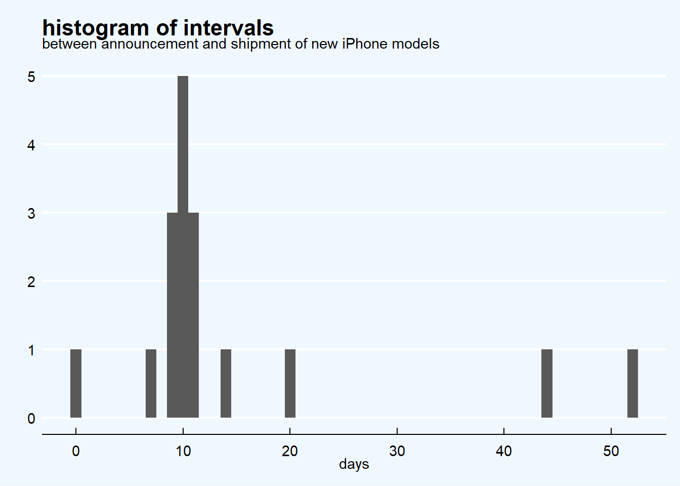 As per the above visualization the intervals are concentrated around 10 days duration.