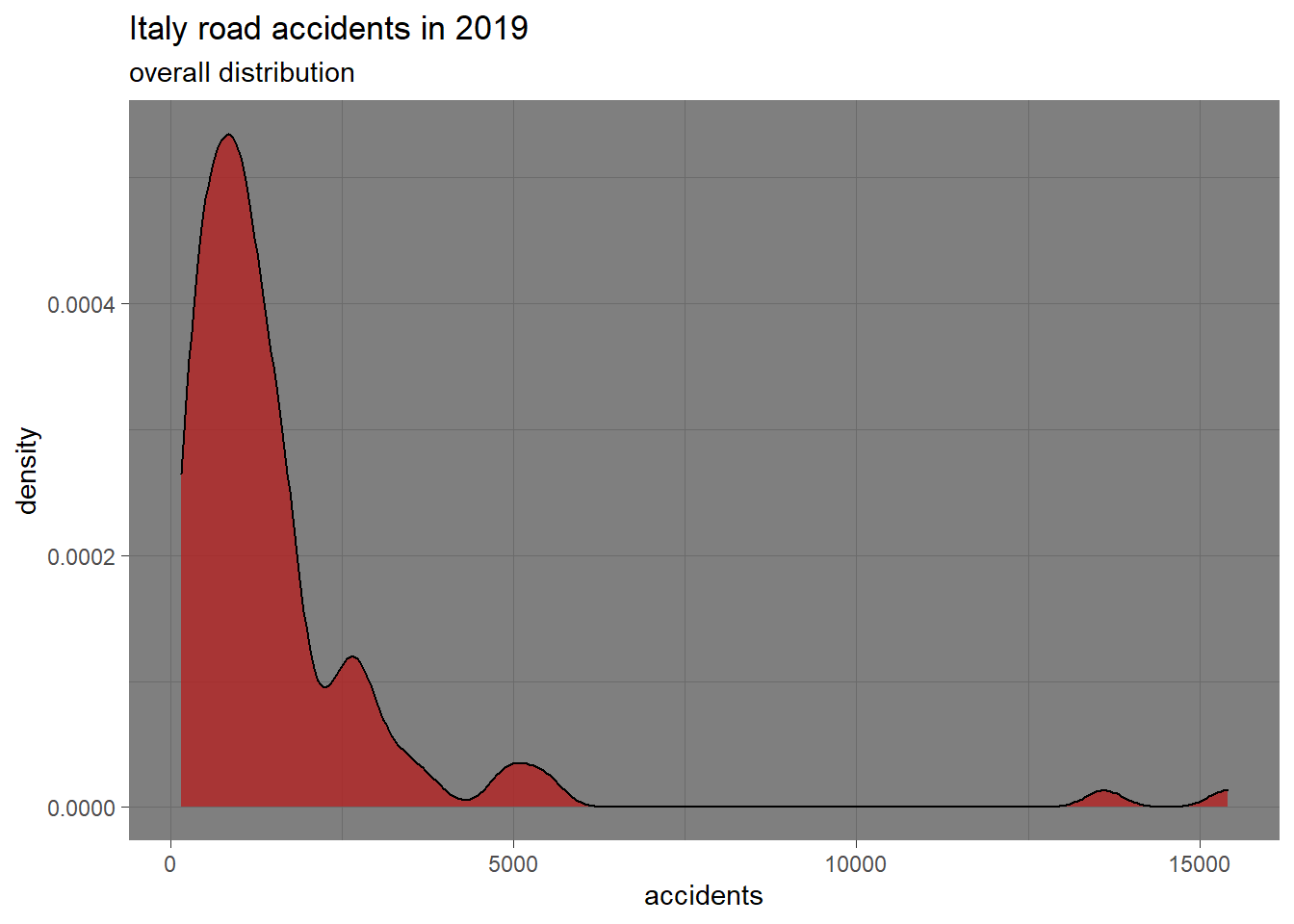 At first glance it seems that the occurrence of road accidents varies greatly depending on the geographical location in Italy.